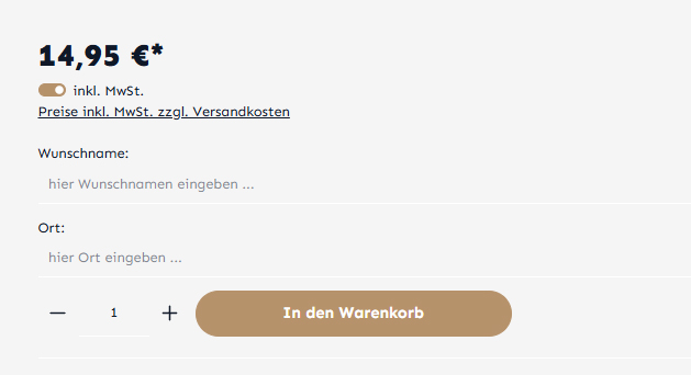 Ermöglicht maßgeschneiderte Bestellungen mit spezifischen Angaben je Artikel. Maximal 5 spezifische Angaben pro Produkt möglich.